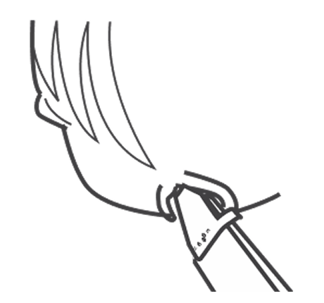 Select ear to scan then press blue button and place tip in ear angled towards front of face